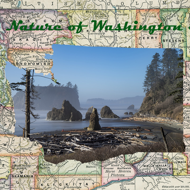 My plan for these picture is that I am going to put the picture of the beach/nature into the outline of Washington State and then put the map of Washington State outside that but zoomed in more so you can see the names of towns and National Wildlife Reserves/Parks.
